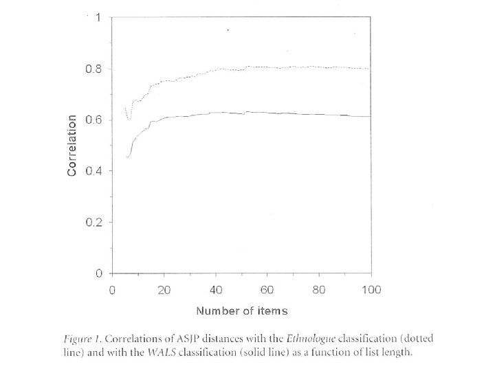 Speed of lexical replacement • 20% of change in basic vocabulary/1000 years • Percentages of cognates – After 1. 000 years : 64% – After 2. 000 years : 41% – After 10. 000 years : 1% • Very little hope for detecting deep linguistic relationships between 2 languages