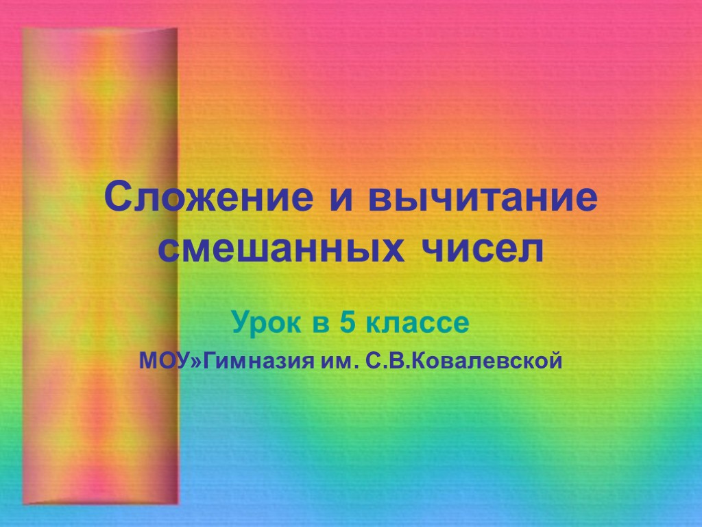 Сложение и вычитание смешанных чисел Урок в 5 классе МОУ»Гимназия им. С.В.Ковалевской