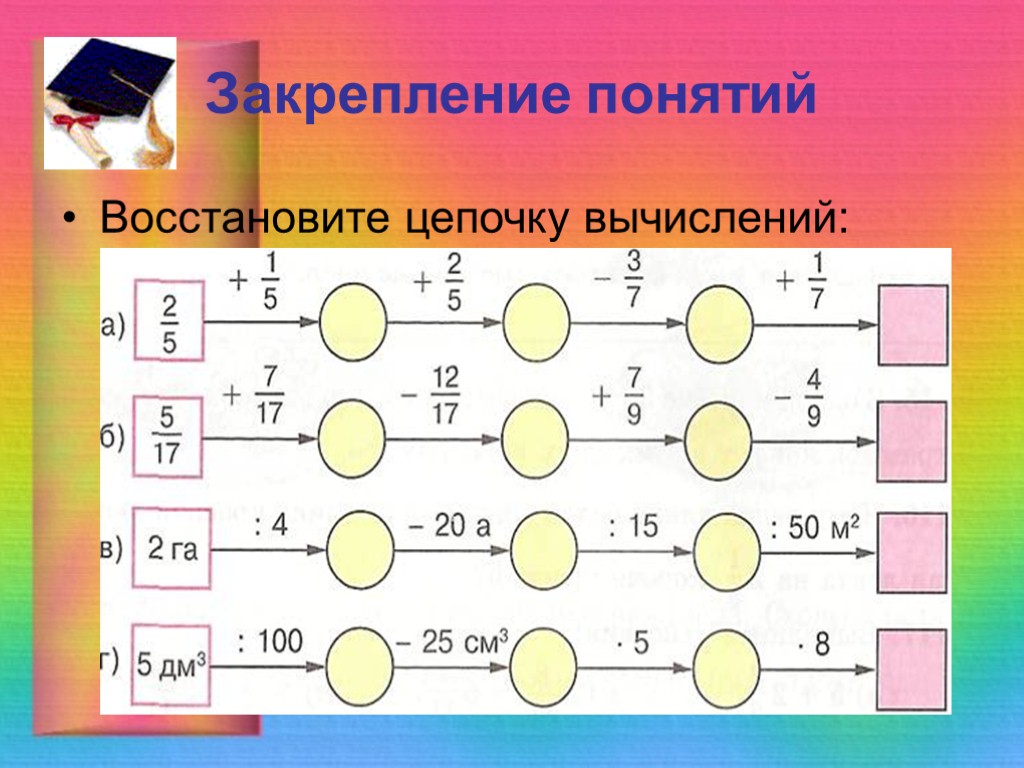 Закрепление понятий Восстановите цепочку вычислений: