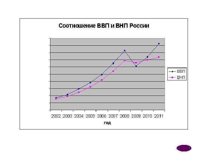 Валовой внутренний продукт (ВВП) — рыночная стоимость всех конечных товаров и услуг, произведенных за год на территории страны. Различают номинальный и реальный ВВП. Валовый национальный продукт (ВНП) – суммарная рыночная стоимость всех конечных товаров и услуг, произведенных как внутри страны, так и за ее пределами за определенный промежуток времени. Национальный доход (НД) – это совокупный доход в рамках экономики государства, созданный всеми владельцами факторов производства.