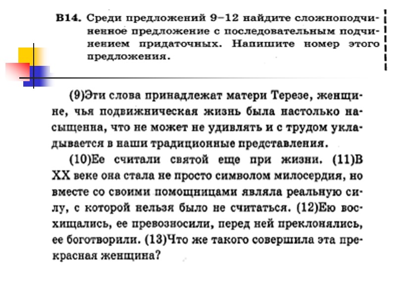 Сложнопочинённые предложения с несколькими придаточными Задание В14 Учитель
