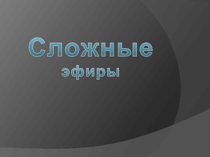 СЛОЖНЫЕ ЭФИРЫ – это класс соединений на основе минеральных (неорганических) или органических карбоновых кислот, у которых атом водорода в ОН-группе замещен органической группой R. . Прилагательное «сложные» в названии эфиров помогает отличить их от соединений, именуемых простыми эфирами.