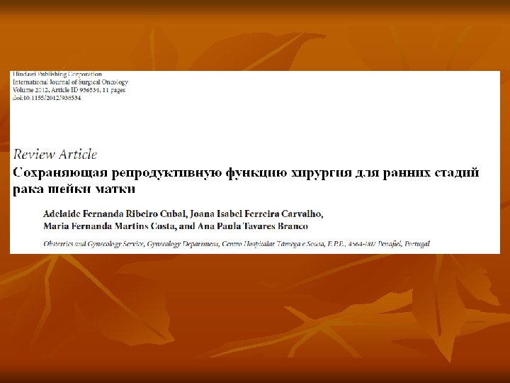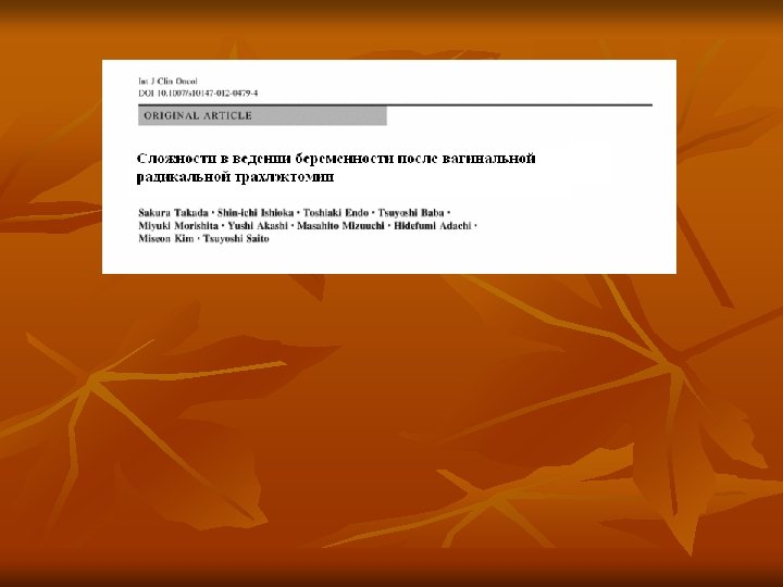 Выводы n n В описанном случае была сохранена репродуктивная функция у пациентки с раком шейки матки II B стадии при использовании гонадо-сохраняющей химиотерапии и суррогатного материнства Неудачу сохранения функции матки, можно объяснить объемом хирургического вмешательства и стадией заболевания