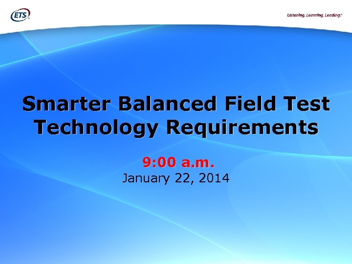 Smarter Balanced Field Test Technology Requirements 9: 00 a. m. January 22, 2014