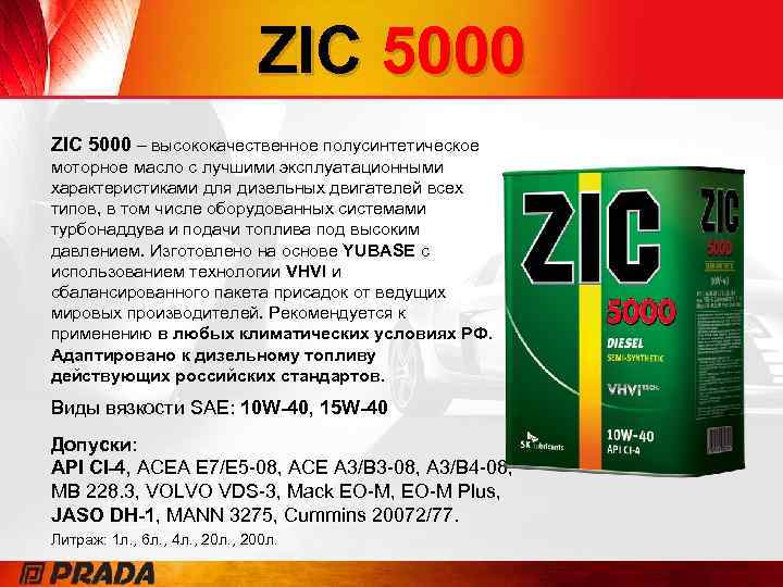 ZIC 5000 – высококачественное полусинтетическое моторное масло с лучшими эксплуатационными характеристиками для дизельных двигателей всех типов, в том числе оборудованных системами турбонаддува и подачи топлива под высоким давлением. Изготовлено на основе YUBASE с использованием технологии VHVI и сбалансированного пакета присадок от ведущих мировых производителей. Рекомендуется к применению в любых климатических условиях РФ. Адаптировано к дизельному топливу действующих российских стандартов. Виды вязкости SAE: 10 W-40, 15 W-40 Допуски: API CI-4, ACEA E 7/E 5 -08, ACE A 3/B 3 -08, A 3/B 4 -08, MB 228. 3, VOLVO VDS-3, Mack EO-M, EO-M Plus, JASO DH-1, MANN 3275, Cummins 20072/77. Литраж: 1 л. , 6 л. , 4 л. , 200 л.