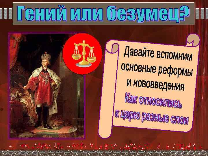 Смерть с Безумьем устроили складчину! И, сменив на порфиру камзол, В Петербург прискакавши из Гатчины, Павел 1 -ый взошел на престол. И, Судьбою в порфиру укутанный, Быстрым маршем в века зашагал, Подгоняя Россию шпицрутеном, Коронованный Богом капрал.