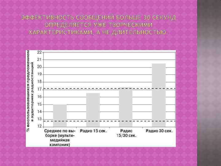 ПРИ ОПРЕДЕЛЕНИИ ИНТЕНСИВНОСТИ РЕКЛАМИРОВАНИЯ ОСНОВНЫМ ОГРАНИЧЕНИЕМ ЧАЩЕ ВСЕГО СЧИТАЮТ БЮДЖЕТ, НО КРОМЕ ЭТОГО ХОТЕЛОСЬ БЫ ОБРАТИТЬ ВНИМАНИЕ НА ТО, ЧТО ЭФФЕКТИВНОСТЬ РЕКЛАМИРОВАНИЯ НА ТЕЛЕВИДЕНИИ В ЗАВИСИМОСТИ ОТ ИНТЕНСИВНОСТИ НОСИТ ЛОГАРИФМИЧЕСКИЙ ХАРАКТЕР, Т. Е. ПОСЛЕ ДОСТИЖЕНИЯ ОПРЕДЕЛЕННОГО УРОВНЯ (120– 150 GRP В НЕДЕЛЮ) ДАЛЬНЕЙШИЙ РОСТ ЗАТРАТ НЕ ПРИВОДИТ К ЗНАЧИМОМУ ПРИРОСТУ ОТКЛИКА.