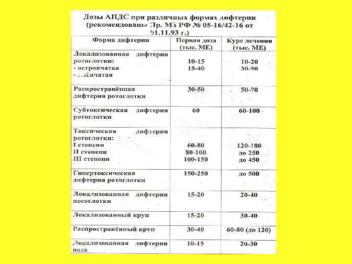 ПРОФИЛАКТИКА СПЕЦИФИЧЕСКАЯ: • АКДС - вакцина; АДС, АДС-М, АДМ - анатоксины; • Разрешены к применению вакцины: "Тетракок" (коклюш, дифтерия, столбняк и полиомиелит); "Д. Т. Вакс" (дифтерия и столбняк до 6 лет); "Д. Т. Адюльт": КОНТАКТНЫЕ: а) вакцинированным, получившим дозу анатоксина более 5 лет назад, вводят 1 дозу АДС-М; б) не привитым, АДС-М анатоксин вводят 2 -х кратно с интервалом 30 дней; в) согласно рекомендациям ВОЗ, всем контактным назначают эритромицин или бензилпенициллин в возрастной дозировке.