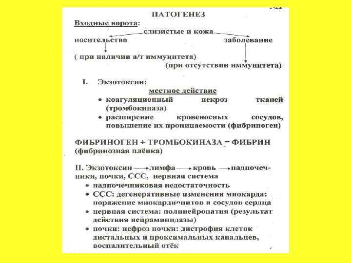 ОСЛОЖНЕНИЯ ДИФТЕРИИ I. Сердечно - сосудистая система • Ранние миокардиты (конец 1, начало 2 недели заболевания); • Поздние миокардиты (3 - 4 неделя заболевания). 2. Нервная система • Ранние полинейропатии (поражение 12 пар черепно – мозговых нервов) 1 -2 неделя заболевания; • Поздние полинейропатии (поражение периферических нервов) 3. Мочевыделителыная система • Нефроз почки; • ОПН 4. Симпато - адреналовая система • итш