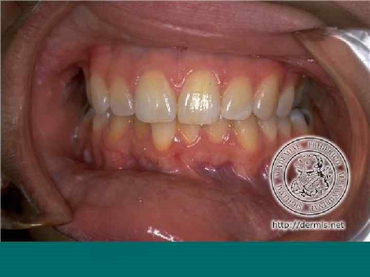 В полости рта субъективно может определяться сухость, небольшая болезненность приеме грубой и горячей пищи. На слизистой полости рта высыпания локализуются па слизистой оболочке щек, по линии смыкания коренных зубов, на языке, губах, реже на деснах, небе и дне полости рта.