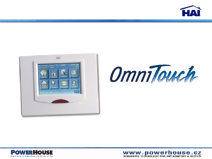 HAI Omni systém § Nejprodávanější integrované systémy v Severní Americe § PC propojení přes Ethernet, sériový interface a modem § Integrovaná architektonická regulace osvětlení § Web-Link II přístup na Internet § Zvýšená bezpečnost a protipožární ochrana § Domácí kontrola pro WMC § HVAC § Hlasový telefonní interface se zabudovanými hlasovými a digitálními voliči