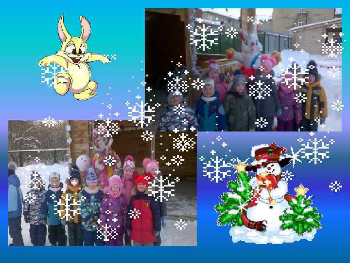 В прекрасный солнечный денек собрались родители и воспитатели группы сделать детям своими руками снежный городок. Вот встречают наших деток Дед Мороз и Снегурочка.