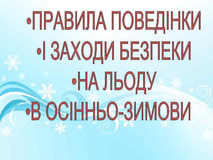 Правила поведінки на льоду. • Ні в якому разі не можна виходити на лід у темний час доби і при поганій видимості (туман, снігопад, дощ). • При переході через річку користуйтеся льодовими переправами • Не можна перевіряти міцність льоду ударом ноги. • При переході водойми групою необхідно дотримуватися відстань один від одного в 5 -6 м.