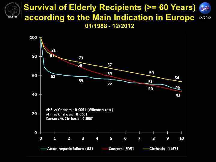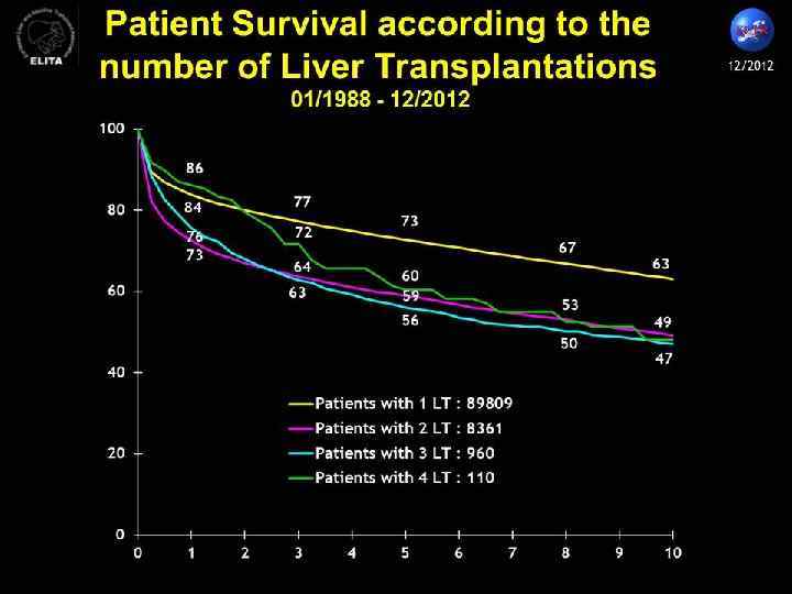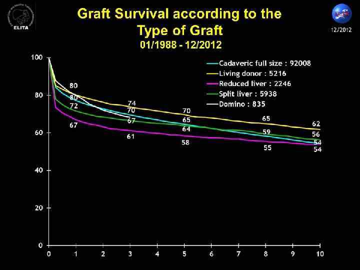 Выживаемость после трансплантации печени Средняя выживаемость – 90% (Япония – 99%) При гепатобластомах – 67% При гемангиоэндотелиомах - 63% При гепатомах - 43% При холангиокарциномах - 40%