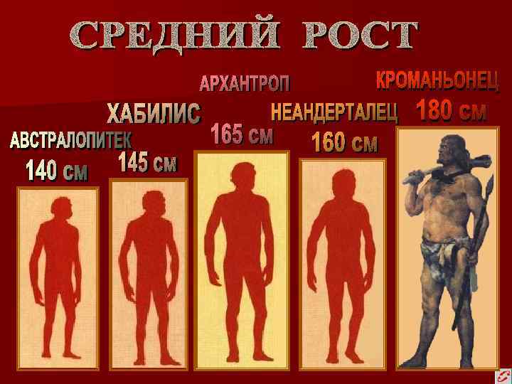 ГЕЙДЕЛЬБЕРГСКИЙ ЧЕЛОВЕК Германия 500 тыс. лет НЕАНДЕРТАЛЕЦ Германия Пещера Неандерталь 150 -40 тыс. лет АВСТРАЛОПИТЕК афарский (Эфиопии) 2, 9 -3, 7 млн. лет СИНАНТРОП Китай (Пещера Чжоукоудянь) 500 – 200 тыс. лет ПИТЕКАНТРОП Остров Ява Индонезия 1, 9 -0, 5 млн. лет ХАБИЛИС Ущелье Олдувай (Танзания) 1, 8 млн. лет