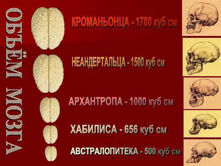 СО ПЛ С ЛН АН ИС ЕЧ ИЗ ЕТ ТЕ НА СЕ А М Я ЗЕ А НА СТ МЛ ХО НЕ Я Д ЙШ О К ИХ АНТРОПОГЕНЕЗА ПАЛЕОГЕНА НЕОГЕНА АНТРОПОГЕНА ЖИЗНИ ВИДОВ А ОГ Е Б Е ТЯН И ЕН АНЕ Я ОР ПЛ ЦИ ТВ О Ю ИН ОЛ ЭВ … … Е … ИЕ ИЕ … НИ Е ЕН Н Е Е Щ ВЕ НЫ РА НО ЕН … ЕВ ИК ОГ ИЕ ЕВ ИК Г ИЕ ПР ЗН ОП АН ПР ЗН О АН ВО ТР СТ ВО Т СТ АН РА НА НА СМ ИЗ ЕНА СР МЕН ВИ Д Крупный и развитый мозг. ОБ ЕДН ЕНИ ОВ ЪЁ ИЙ Е Сложная нервная система. М РО ФИГ Умение делать орудия труда. МО С УР Руки с подвижными пальцами. ЗГ Т Ы А Встали на задние ноги. Бинокулярное цветное зрение. Могли членораздельно говорить.