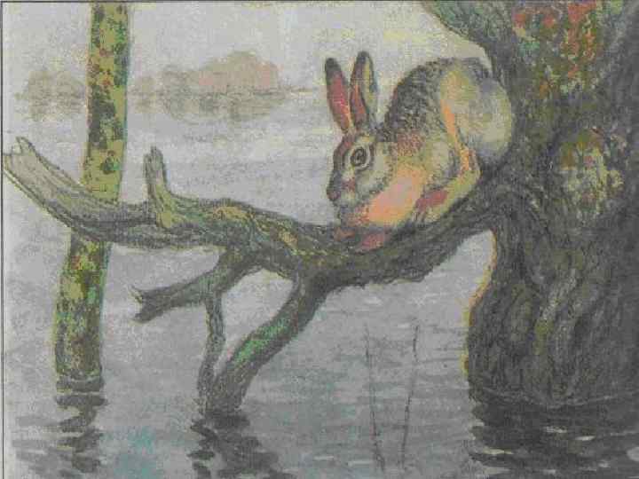 Кто изображен на картине? • Заяц, который забрался на дерево, спасаясь от наводнения