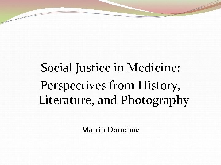 Social Justice in Medicine: Perspectives from History, Literature, and Photography Martin Donohoe