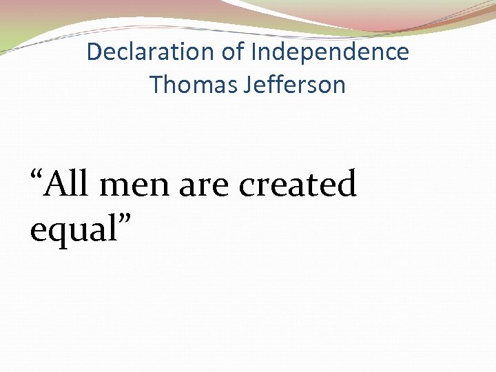 Declaration of Independence Thomas Jefferson “All men are created equal”