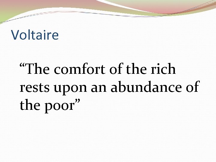 Voltaire “The comfort of the rich rests upon an abundance of the poor”