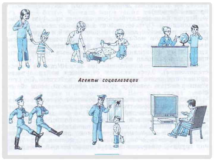 АГЕНТЫ СОЦИАЛИЗАЦИИ • Агенты социализации люди, в непосредственном взаимодействии с которыми протекает его жизнь • На разных возрастных этапах состав агентов специ фичен • По своей роли в социа лизации агенты различаются в зависимости от того, насколько они значимы для человека, как строится взаимодействие с ними, в каком направлении и какими средствами они оказывают свое влияние