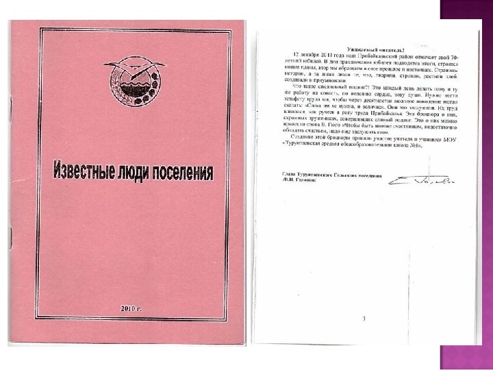 Проблема: В преддверии юбилейной даты района поступил заказ от сельского поселения на создание брошюры «Известные люди поселения» Цель: Использовать информационно издательские технологии для создания продукта