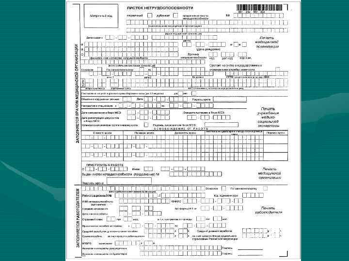 01 – заболевание; 02 – травма; 03 – карантин; 04 – несчастный случай на производстве или его последствия; 05 – отпуск по беременности и родам; 06 – протезирование в стационаре; 07 – профессиональное заболевание или его обострение; 08 – долечивание в санатории; 09 – уход за больным членом семьи; 10 – иное состояние (отравление, проведение манипуляций и др. ); 11 – заболевание, указанное в перечне социально-значимых заболеваний, 12 – в случае заболевания ребенка, включенного в перечень заболеваний, определяемый Минздравсоцразвития России в соответствии с ч. 5 ст. 6 Федерального закона от 29. 12. 2006 № 255 -ФЗ 13 – ребенок-инвалид; *14 – поствакцинальное осложнение или злокачественное новообразование у ребенка; *15 – ВИЧ-инфицированный ребенок. * Коды 14 и 15 проставляются только при согласии застрахованного лица