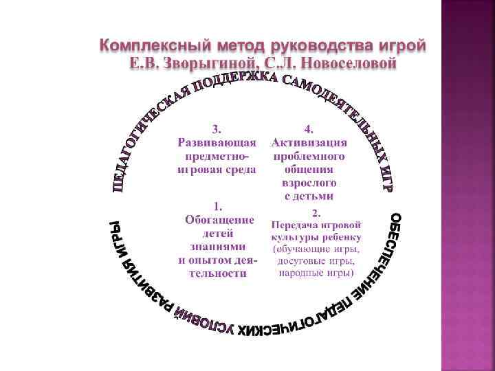 МЕТОД РУКОВОДСТВА СЮЖЕТНО-РОЛЕВОЙ ИГРОЙ Н. Я. МИХАЙЛЕНКО И Н. А КОРОТКОВОЙ Первый принцип: для того, чтобы дети овладели игровыми умениями, воспитатель должен играть вместе с ними Второй принцип: на каждом возрастном этапе игра развертывается особым образом, так, чтобы детьми «открывался» и усваивался новый, более сложный способ построения игры Третий принцип: на каждом возрастном этапе при формировании игровых умений необходимо ориентировать детей как на осуществление игрового действия, так и на пояснение его смысла партнерам