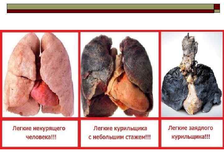 Социальные опасности В первую очередь курение затрагивает легкие: это одна из главных причин эмфиземы и рака легких (85% случаев). Курильщики часто болеют и раком гортани, пищевода, ротовой полости, мочевого пузыря, почек, поджелудочной железы. При «пассивном курении» некурящие люди за 1 час вдыхают столько вредных веществ дыми, сколько они могли бы получить, если бы они сами выкурили одну сигарету.