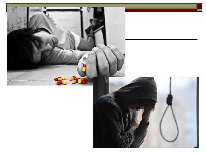 Социальные опасности Существует убеждение, что кончают с собой психически больные люди. На самом деле они составляют лишь 25 -27%, еще 19% - это алкоголики. Большая часть самоубийц – это здоровые люди. Специалисты убеждены, что суициды – это результат влияния социальной среды, подрывающей веру человека. Намерение лишить себя жизни появляется у человека в условиях, когда он оценивает ситуацию как неразрешимый конфликт. Причин самоубийств много. Это – болезни, предательство, тяжелые условия жизни, проблемы отцов и детей, любовные отношения, религиозное влияние и т. п. Покушений на самоубийство больше у женщин (в 8 -10 раз), завершенных суицидов – у мужчин (в 4 раза). В настоящее время наблюдается рост самоубийств среди детей и подростков.