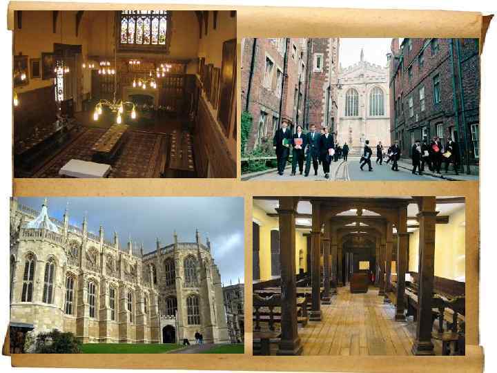 Традиции, дух колледжа ØВстречи с учителями после палат; Ø Часовня – место сбора; ØПаб для старших (с 16 лет) ØСловарь Итона; ØПраздник 4 -го июня – Лодочная регата; ØИгра Итонский пристенок; ØОсобый итонский диалект…