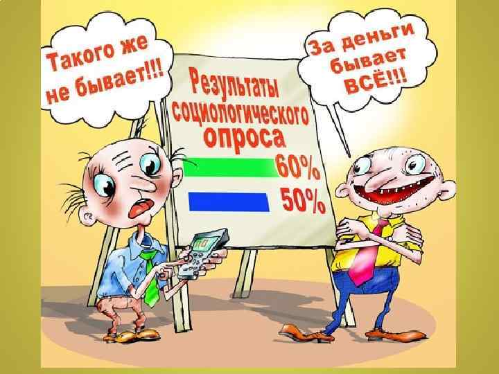Ошибка репрезентативности • Социологов постоянно волнует вопрос о том, как много человек следует опрашивать. • Институт Гэллапа в США проводит регулярные опросы по национальной выборке объёмом в 1500 человек и достигает точности – ошибка составляет 1 -1, 5%. • Центр в Институте социологии РАН проводит исследования на выборке объёмом в 2000 человек, при этом ошибка выборки не превышает 3%. • Расхождение между генеральной и выборочной совокупностью называется ошибкой репрезентативности. • Например, если средняя зарплата населения 5 тысяч рублей и на уровне выборки – 10 тысяч рублей, то это уже расхождение между двумя совокупностями.