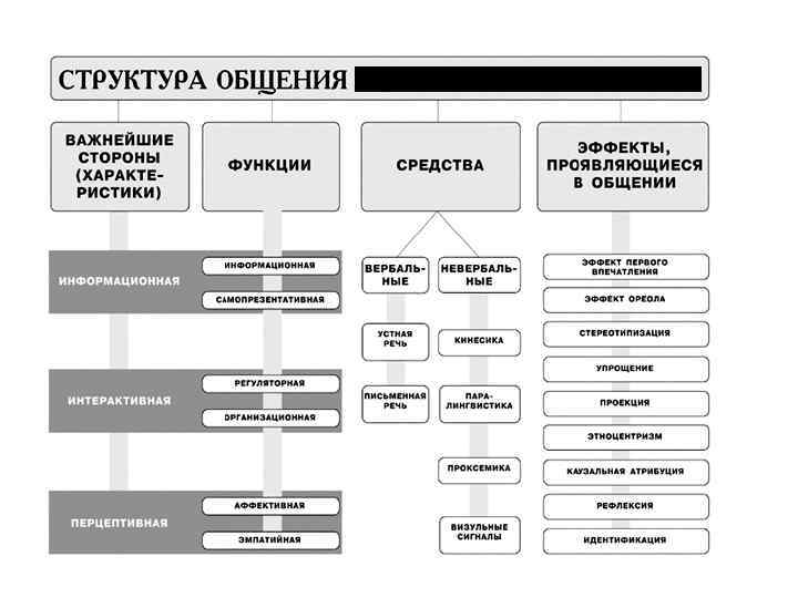 Структура общения Коммуникативная Интерактивная сторона общения, сторона или коммуникация в заключается в узком смысле организации слова, состоит в взаимодействия обмене между информацией общающимися между индивидами, т. е. в общающимися обмене не только индивидами. знаниями, идеями, но и действиями. Перцептивная сторона общения означает процесс восприятия и познания друга партнерами по общению и установления на этой основе взаимопонимания.
