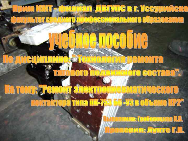 Содержание: 1. Назначение контактора 2. Разборка ПК-753 3. Ремонт контактора 4. Сборка электропневматического контактора типа ПК-753 Б 6 -УЗ