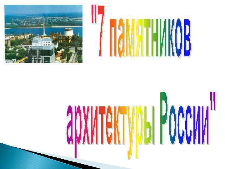 СОДЕРЖАНИЕ 1. Здание Царицынской пожарной команды 2. Волгоградский краеведческий музей 3. Здание гостиницы «Столичные номера» (сейчас гостиница «Волгоград» ) 4. Железнодорожный вокзал «Волгоград I» 5. Государственный историкоэтнографический и архитектурный музейзаповедник «Старая Сарепта» 6. Волго-Донской судоходный канал имени В. И. Ленина 7. Волгоградский планетарий