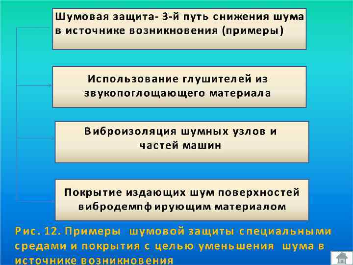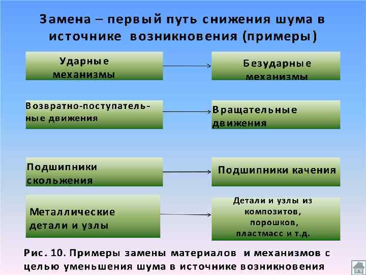 1. 4 Методы защиты от шума: Уменьшение шума в источнике возникновения: Замена ударных механизмов безударными, возвратно поступательных движений вращательными, подшипников качения на подшипники скольжения, совершенствование кинематических схем, применение пластмассовых деталей, использование глушителей из звукопоглощающего материала, виброизоляция шумных узлов и частей машин, покрытие издающих шум поверхностей вибродемпфирующим материалом, статическая и динамическая балансировки. [3 5]