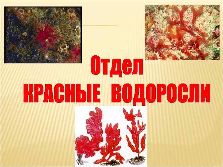 • В основном обитают в морях. • Заселяют значительные глубины (до 260 м – абсолютный рекорд для растений). • Встречаются одноклеточные и многоклеточные формы. • Содержат фикобилины (красные пигменты), каротиноиды и хлорофилл. • Таллом: пластинчатый (порфира), кустистый и нитевидный. • У многих есть ризоиды. • Оболочка клеток покрыта слоем пектинов, из которых получают агар-агар. • Запасное вещество – липиды и крахмал.