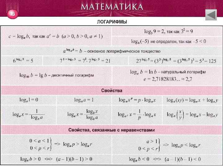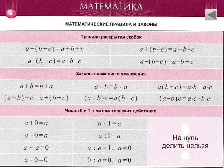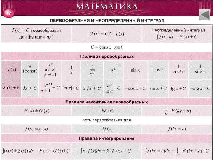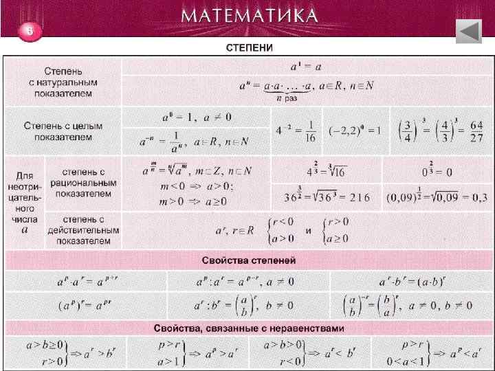 СОДЕРЖАНИЕ • Рациональные числа • • Математические правила и законы • Многочлены • • • Элементарные функции… • Логарифмы • Степени • Производная • Квадратные корни • Первообразная и неопределенный интеграл • Корни натуральной степени • • Прогрессии Определённый интеграл и его приложения… • Комбинаторика. Элементы теории вероятностей • Арифметические действия над дробями Модуль Уравнения… Числовые промежутки Неравенства… Тригонометрия…