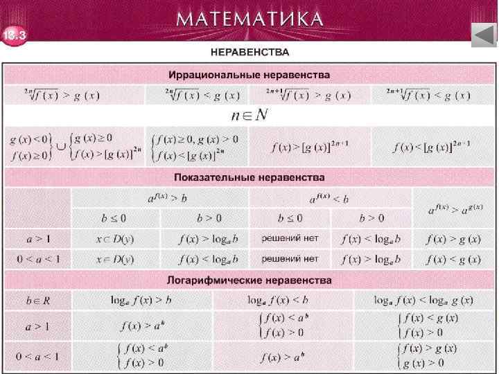 Неравенства • Свойства неравенств. Схемы решения неравенств • Линейные и нелинейные неравенства • Иррациональные неравенства. Показательные и логарифмические неравенства