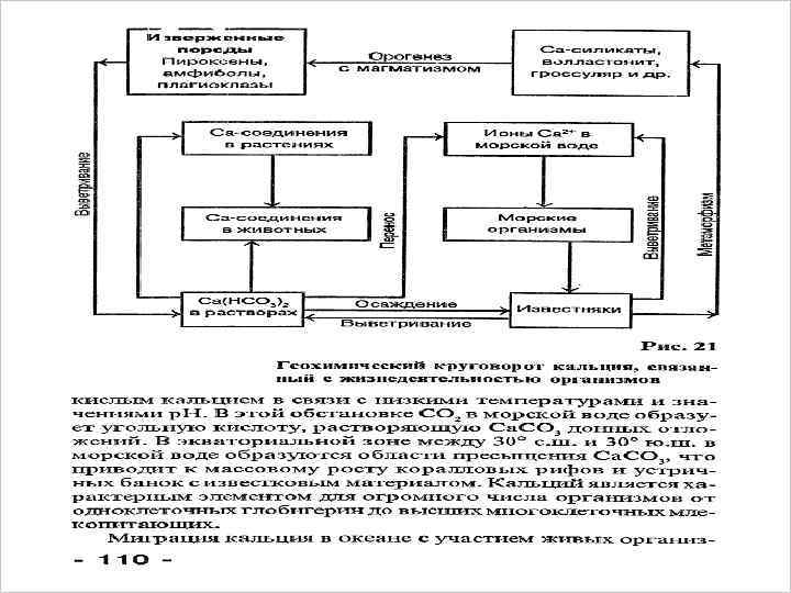 Кальций — распространенный макроэлемент в организме растений, животных и человека. В организме человека и других позвоночных большая его часть содержится в скелете и зубах в виде фосфатов. Из различных форм карбоната кальция состоят скелеты большинства групп беспозвоночных. Ионы кальция участвуют в процессах свертывания крови, а также в обеспечении постоянного осмотического давления крови.