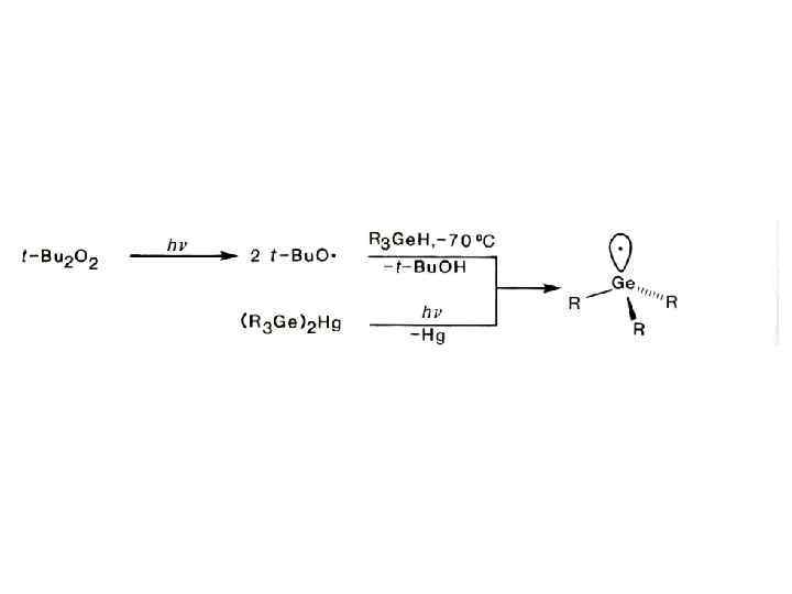 Соединения Rn 14 MH 4 n О полярности связи 14 M–H R 3 Sn–H + CH 3 COOH R 3 Sn–OOCCH 3 + H 2 H– 4 R 3 Sn–H + Ti(NR’ 2)4 (R 3 Sn)4 Ti + 4 HNR’ 2 H+ 2 R 3 Sn–H + R’ 2 Hg (R 3 Sn)2 Hg + 2 R’H – Hg R 3 Sn–Sn. R 3 R = CH 3, – 10 o. C R = Ph, +100 o. C H •