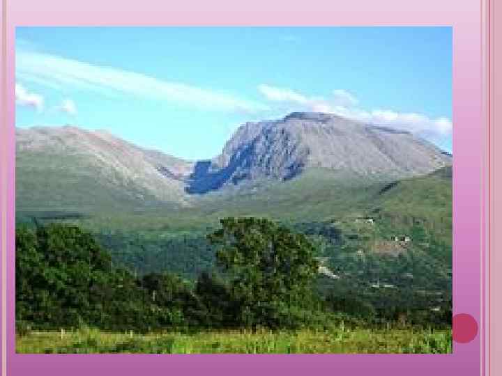 Рельеф По особенностям рельефа территорию Соединенного Королевства можно подразделить на две основных области. Высокая Британия (подстилается устойчивыми древними коренными породами и представляет собой в основном сильно расчлененные возвышенности и гораздо менее распространенные низменности. ) и Низкая Британия, отличающаяся холмистым рельефом, небольшими возвышенностями и несколькими горными районами; в ее основании залегают более молодые осадочные породы.
