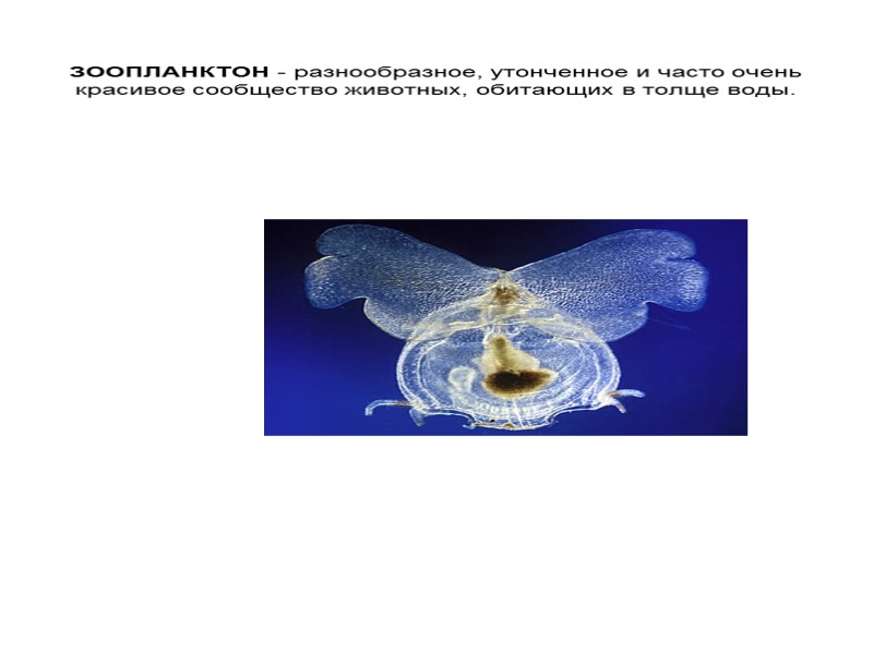 ЗООПЛАНКТОН - разнообразное, утонченное и часто очень красивое сообщество животных, обитающих в толще воды.