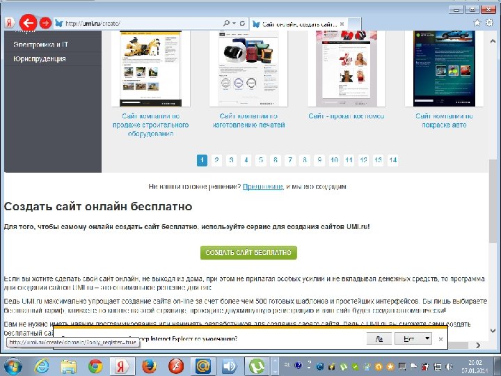 Сьогодні ви дізнаєтесь: 1. Що таке веб-сторінка, веб – портал? Відмінність між цими поняттями. 2. Класифікація веб – сторінок; 3. Класифікація веб- сайтів; 4. Етапи створення веб – сайтів 5. Автоматизоване створення веб сайту на http: //umi. ru 6. http: //umi. ru/create/ Дата