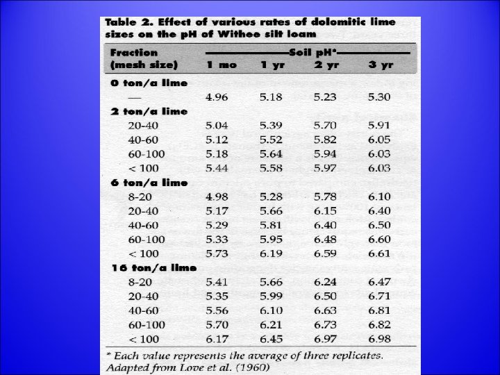 Target p. H • • • Alfalfa – 6. 8 Red Clover – 6. 3 Soybean – 6. 3 Corn – 6. 0 Pasture – 6. 0 Oats – 5. 8