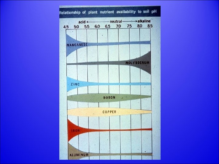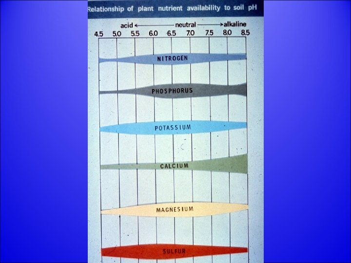 Soil p. H Effects on Soil Properties • Availability of most essential and non-essential elements • Activity of microorganisms – p. H 5. 5 - 6. 5 best nitrification and OM decomposition rates • Ability of soil to hold cations