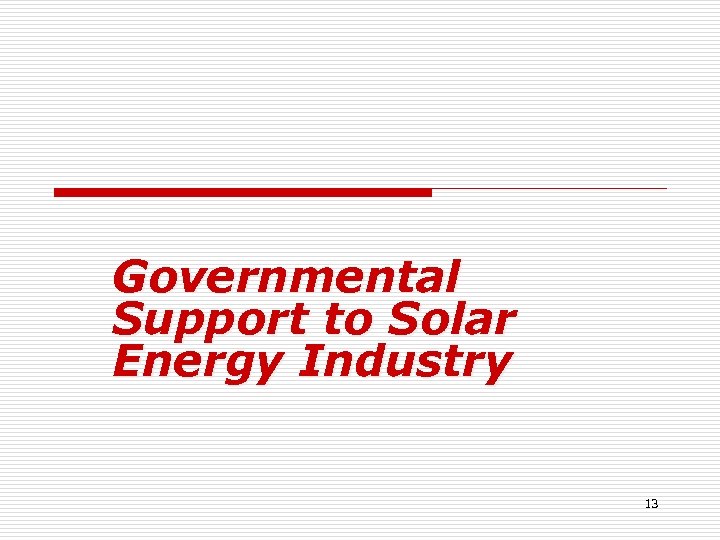 Governmental Support to Solar Energy Industry 13