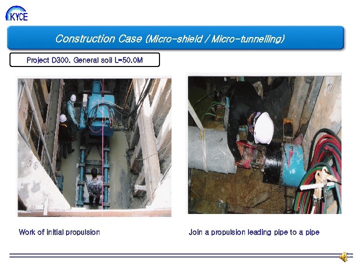 Construction Case (Micro-shield / Micro-tunnelling) Project D 300. General soil L=50. 0 M Work of initial propulsion Join a propulsion leading pipe to a pipe