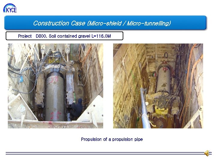 Construction Case (Micro-shield / Micro-tunnelling) Project D 800. Soil contained gravel L=116. 0 M Propulsion of a propulsion pipe