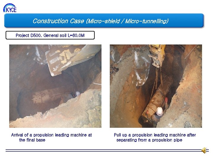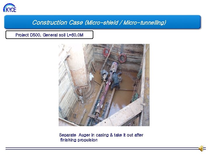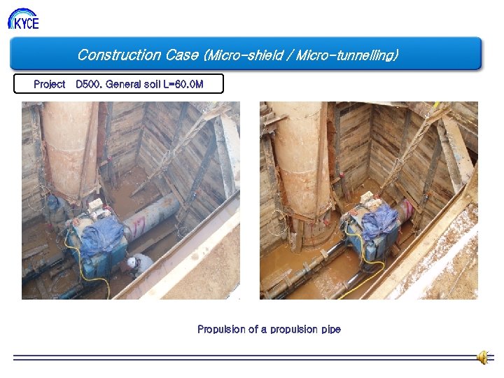 Construction Case (Micro-shield / Micro-tunnelling) Project D 500. General soil L=60. 0 M Join a propulsion pipe Propulsion of a propulsion pipe